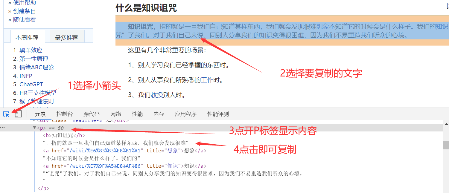 按F12键,可以打开开发者模式,然后选择要复制的文本块。