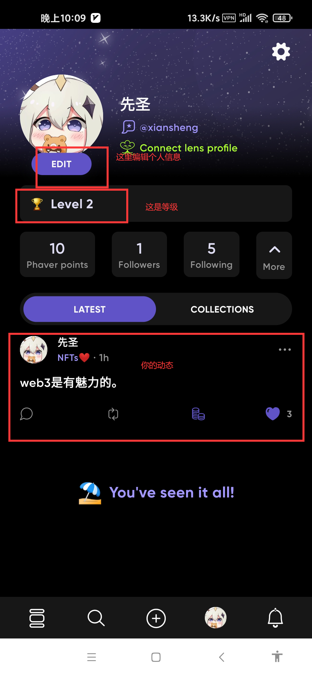 看了一些资料,首先你需要一个lens域名NFT才可以接下来玩。