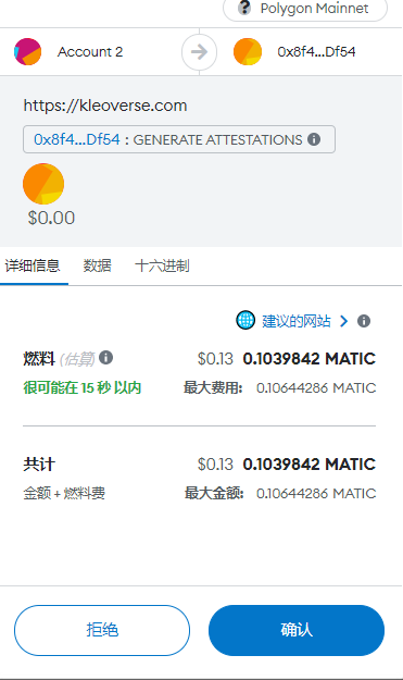 我们需要一点MATIC作为GAS费用,大概在0.1刀左右,可以向小伙伴买一点,或者直接去交易所提一点。